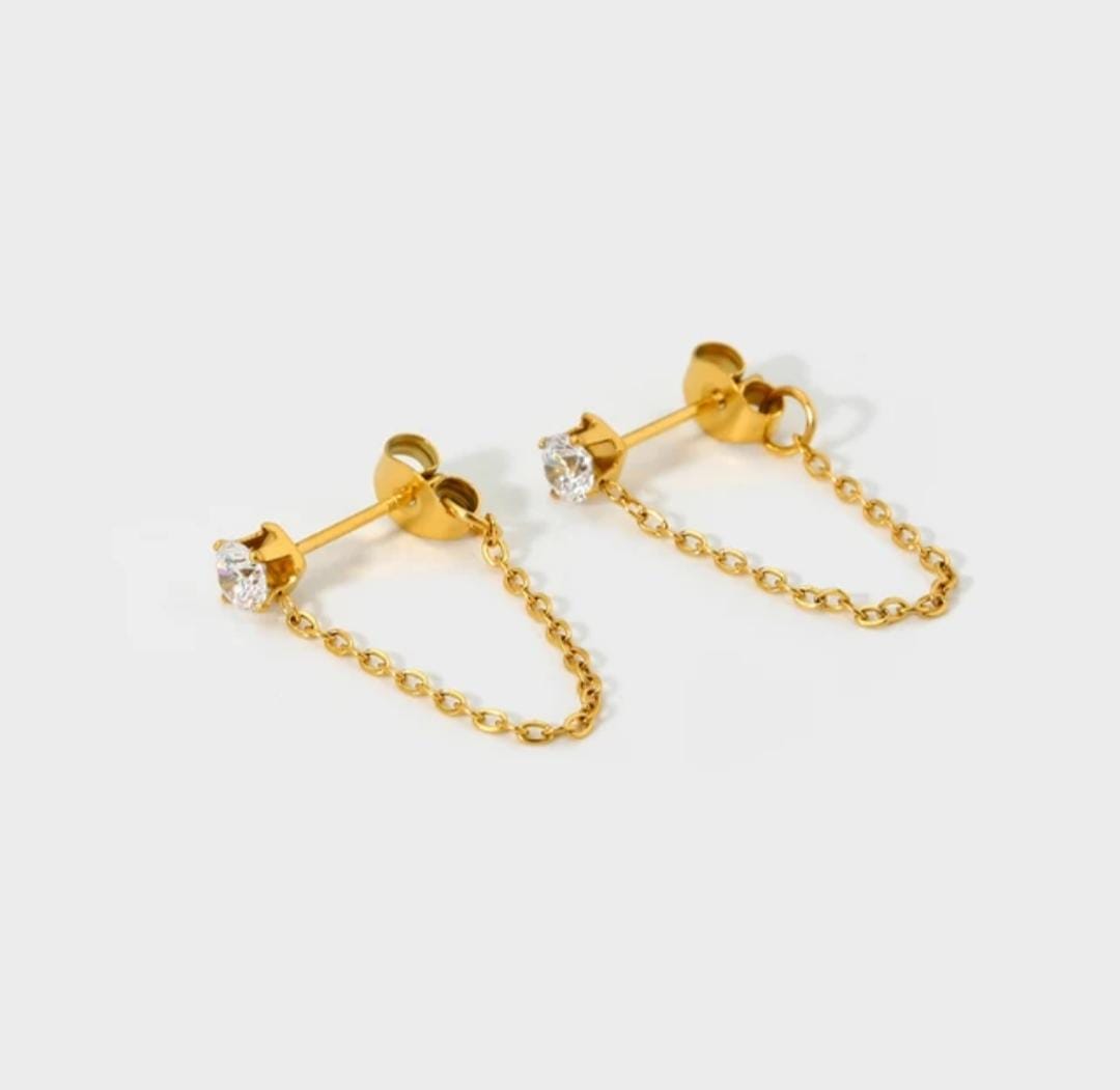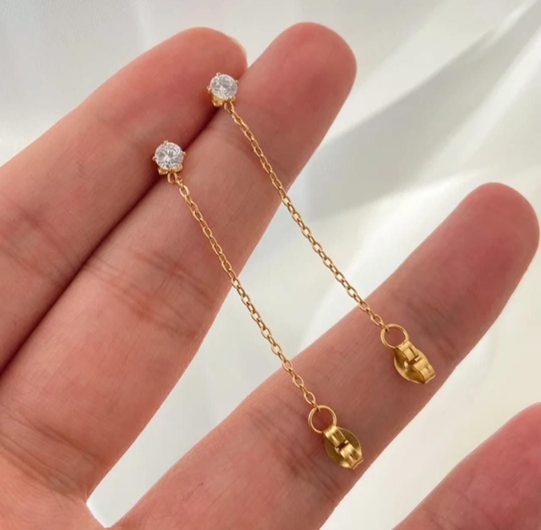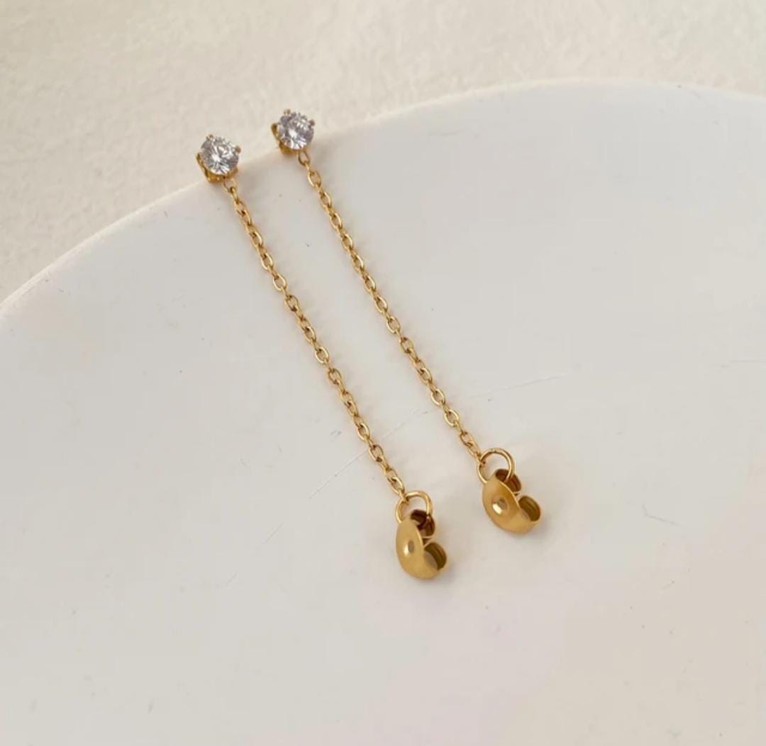 Stainless steel,18k gold plated,hypoallergenic,non-tarnish,water resistant & Sweat proof (can shower or swim with)