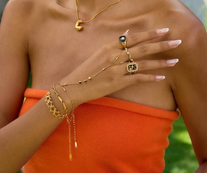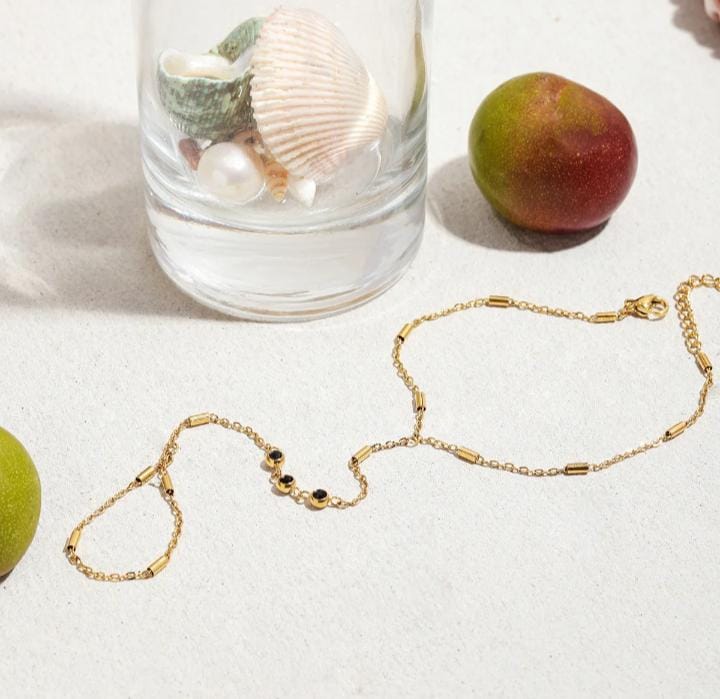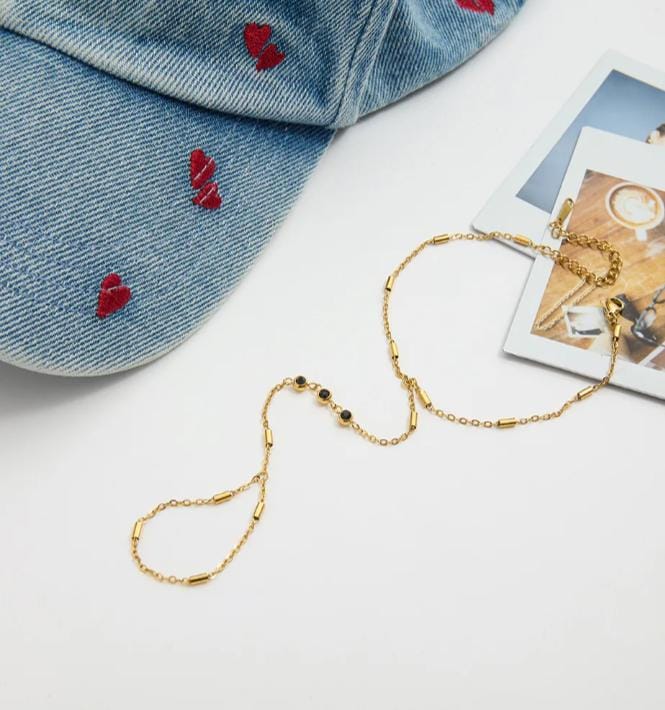 Ameilia tiny bar with small black zirconia minimalist handchain Taal