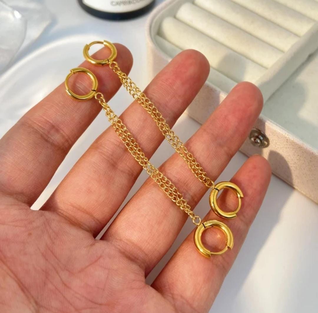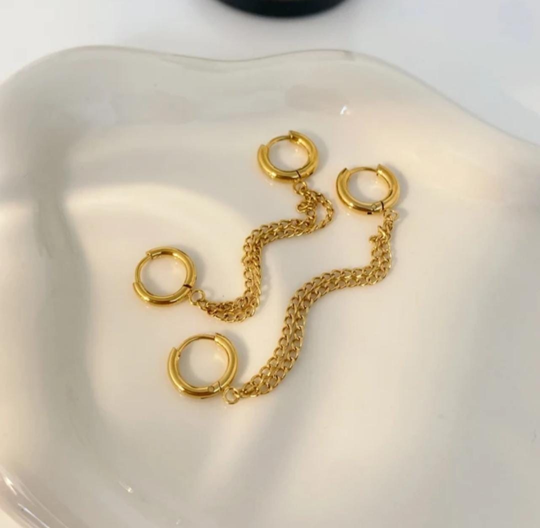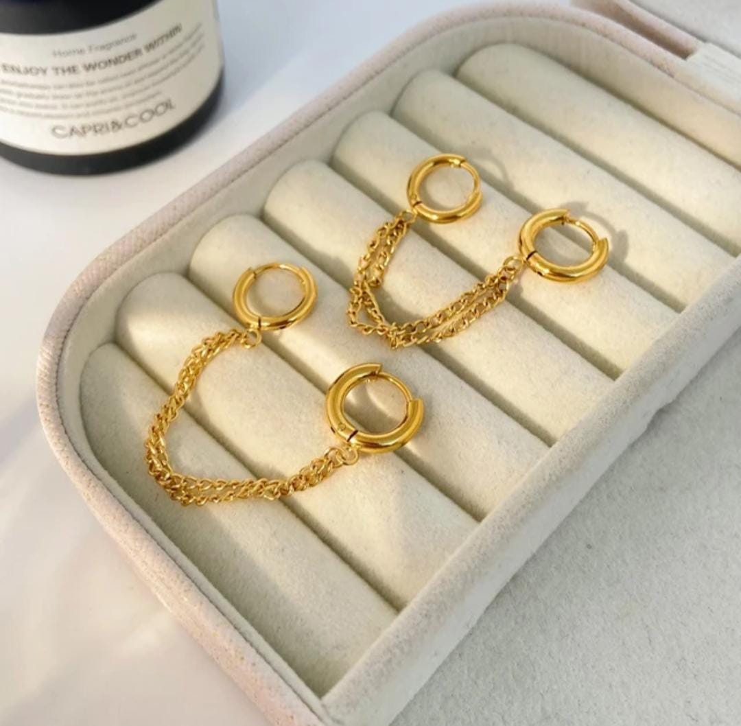 Stainless steel,18k gold plated,hypoallergenic,non-tarnish,water resistant & Sweat proof (can shower or swim with)