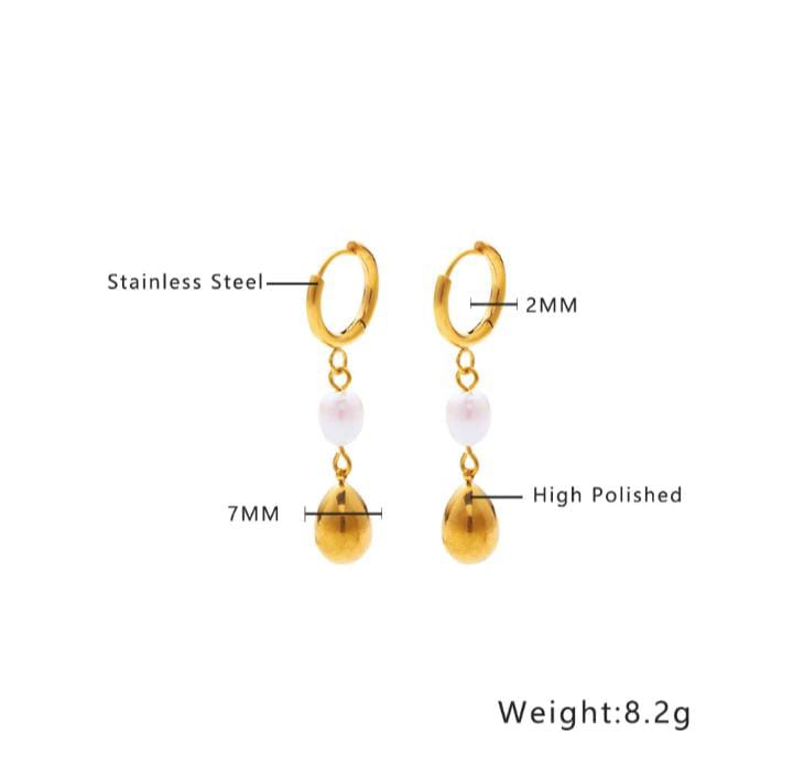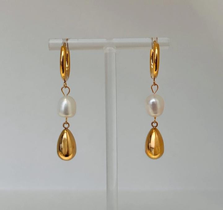 Water droplet pendant hoop earrings freshwater pearl (REAL PEARL)