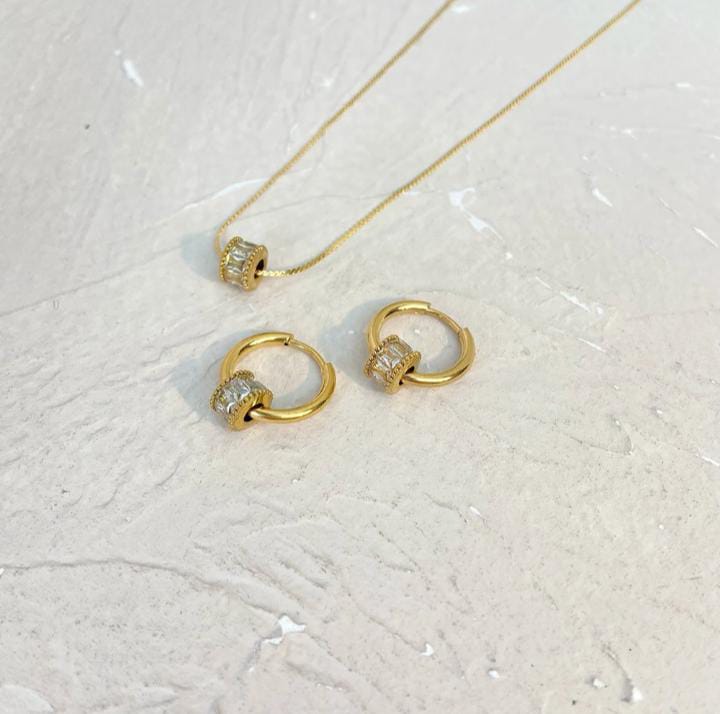 Stainless steel,18k gold plated,hypoallergenic,non-tarnish,water resistant & Sweat proof (can shower or swim with)