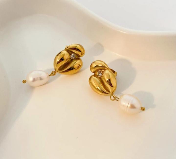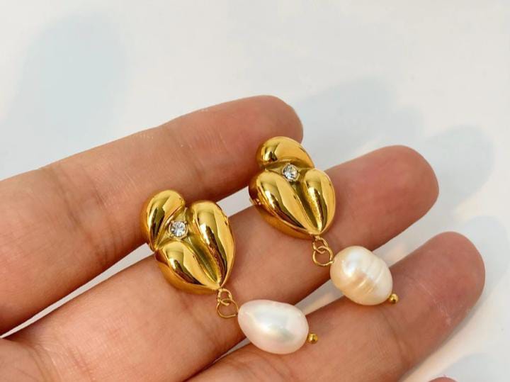 Heart-shaped Teardrop earrings freshwater pearl (REAL PEARL)