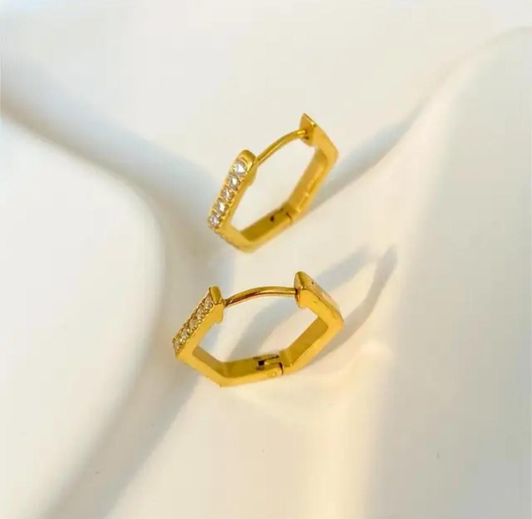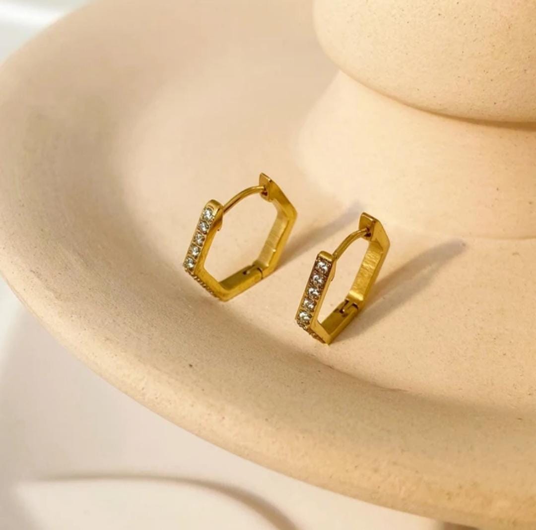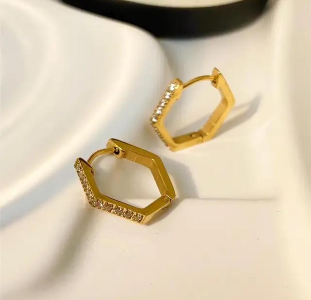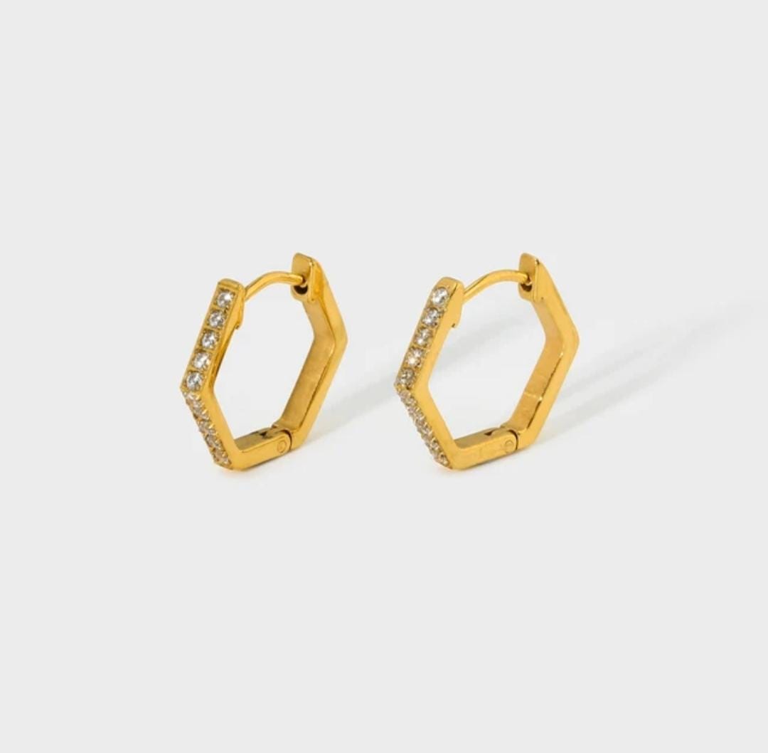Hexagon hoops earrings with cubic zirconia