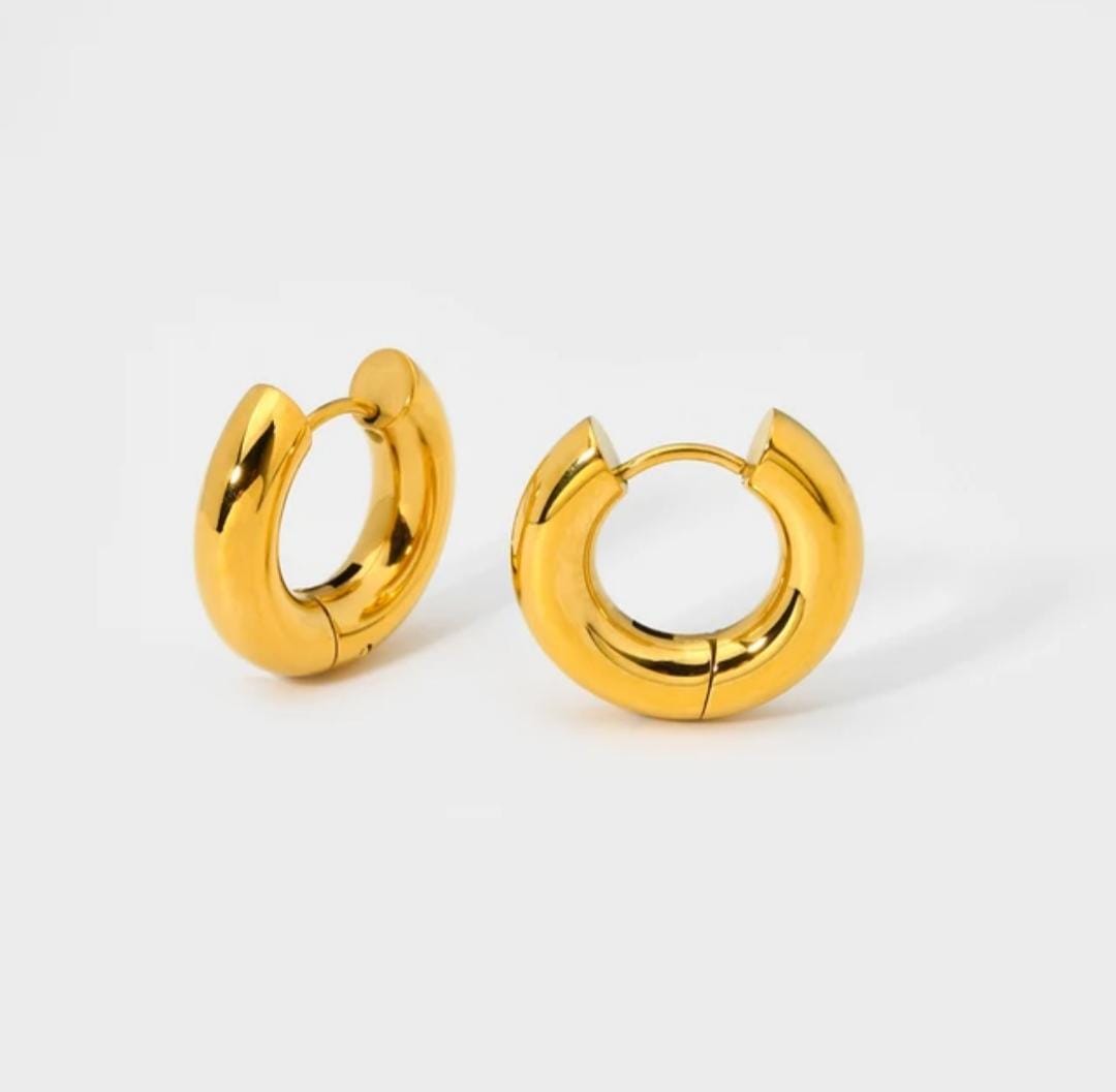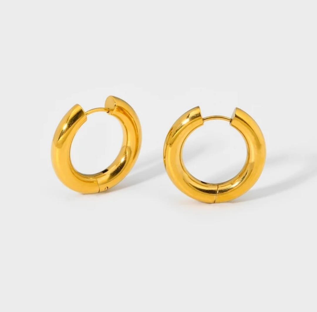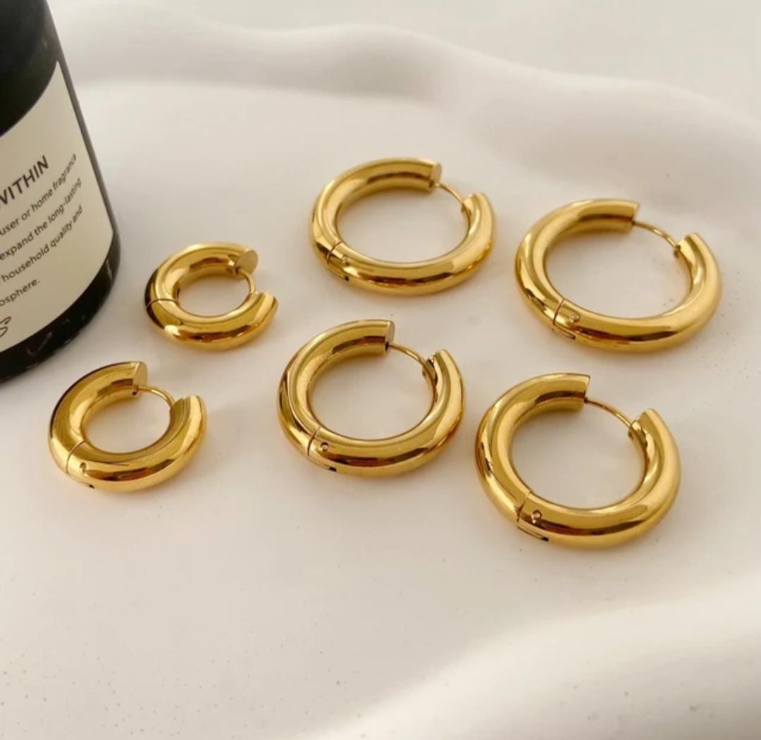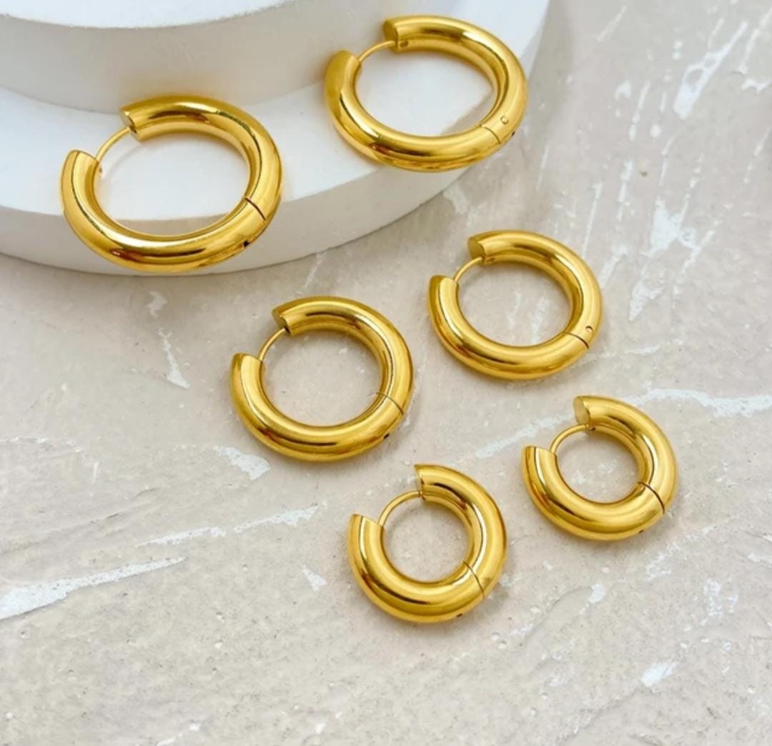Stainless steel,18k gold plated,hypoallergenic,non-tarnish,water resistant & Sweat proof (can shower or swim with)