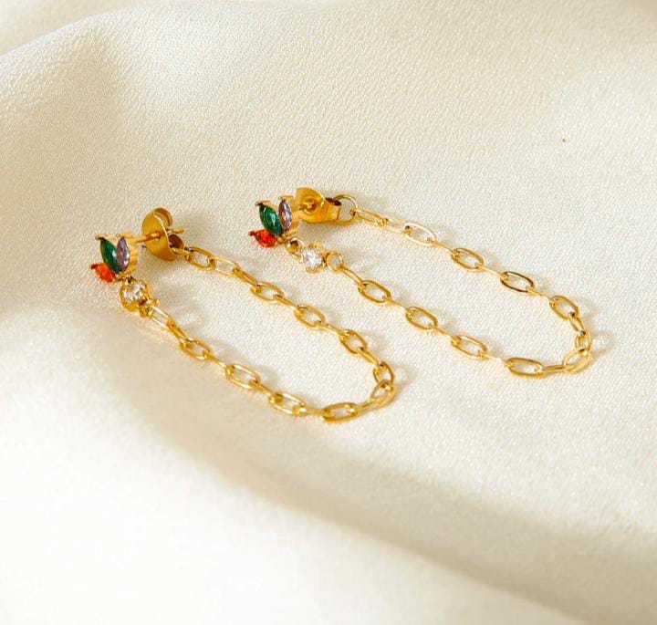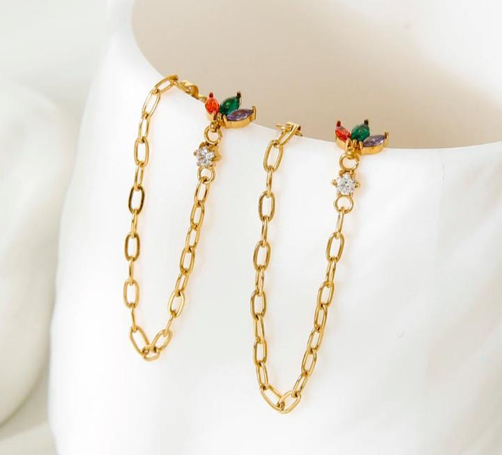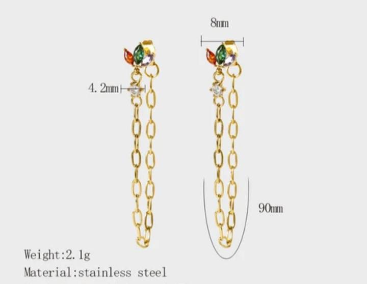Colorful Three Leaf flower zircon earring chain