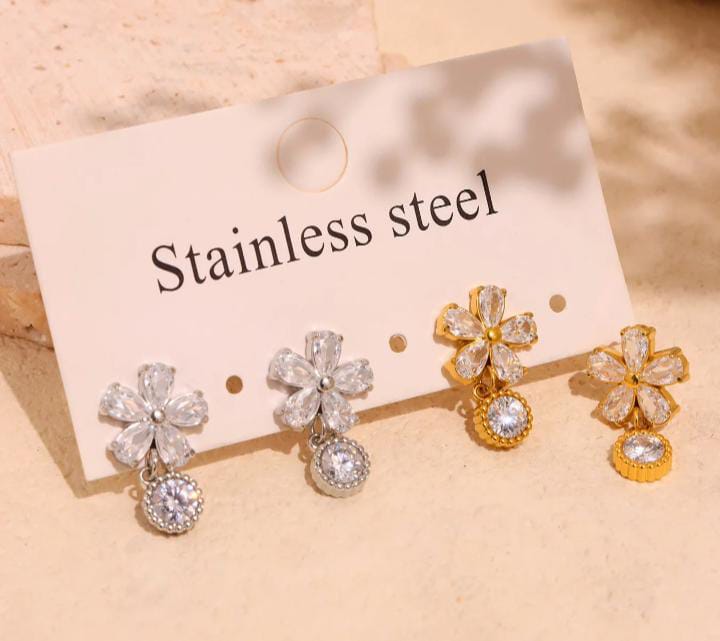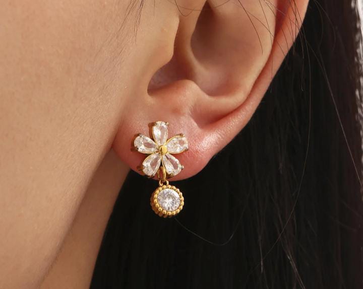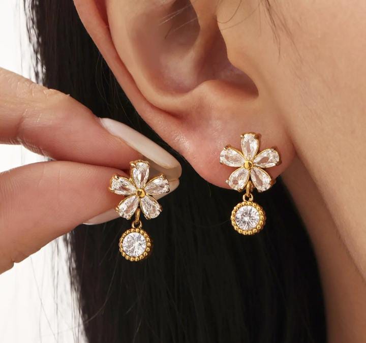 Luxury Stud Flower Pendant Zircon Earrings