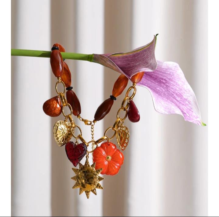 Mexican pumpkin heart star chain