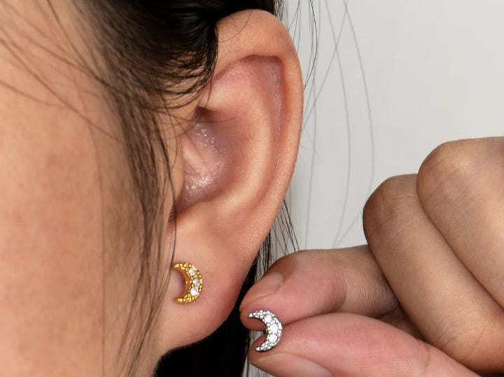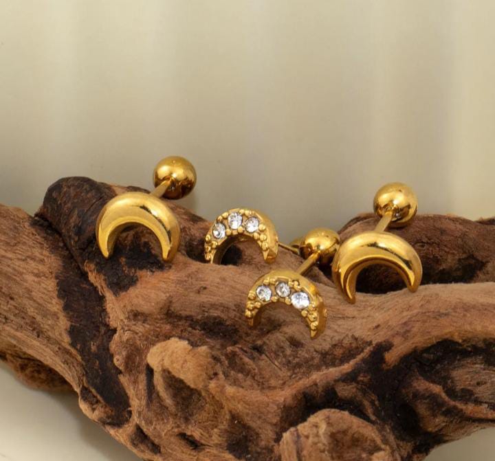 Stainless steel,18k gold plated,hypoallergenic,non-tarnish,water resistant & Sweat proof (can shower or swim with)