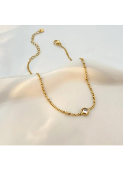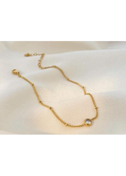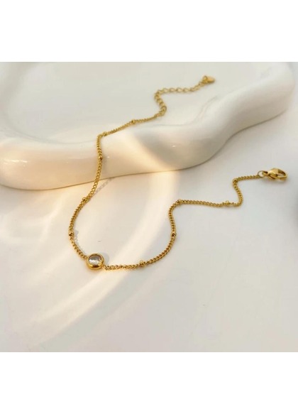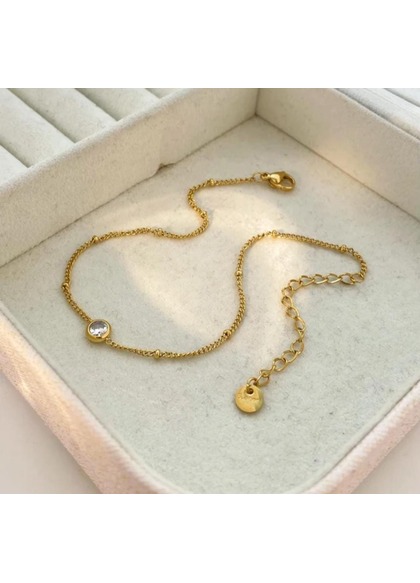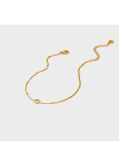 Minimalist Poesia Anklet With Tiny Beads & Zirconia