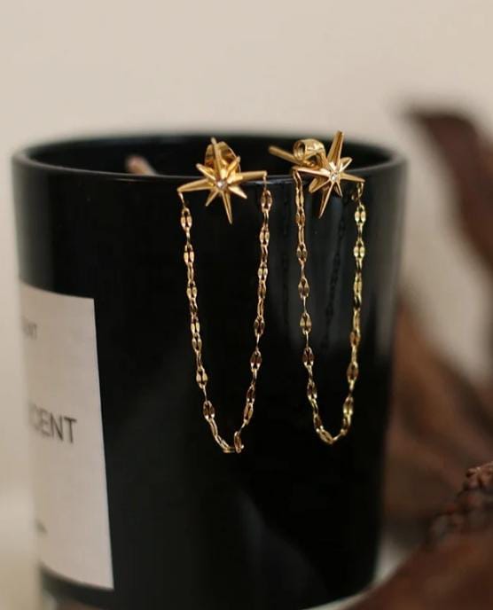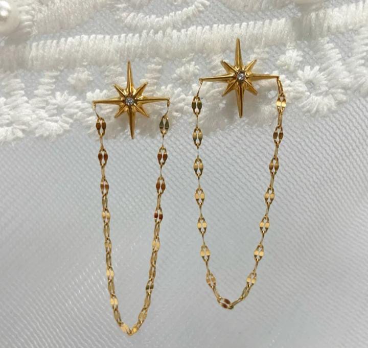 Stainless steel,18k gold plated,hypoallergenic,non-tarnish,water resistant & Sweat proof (can shower or swim with)