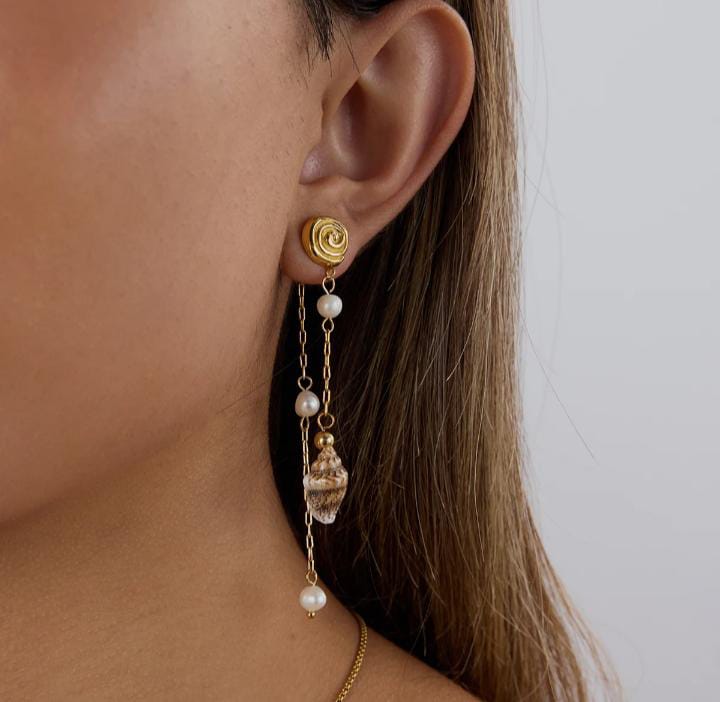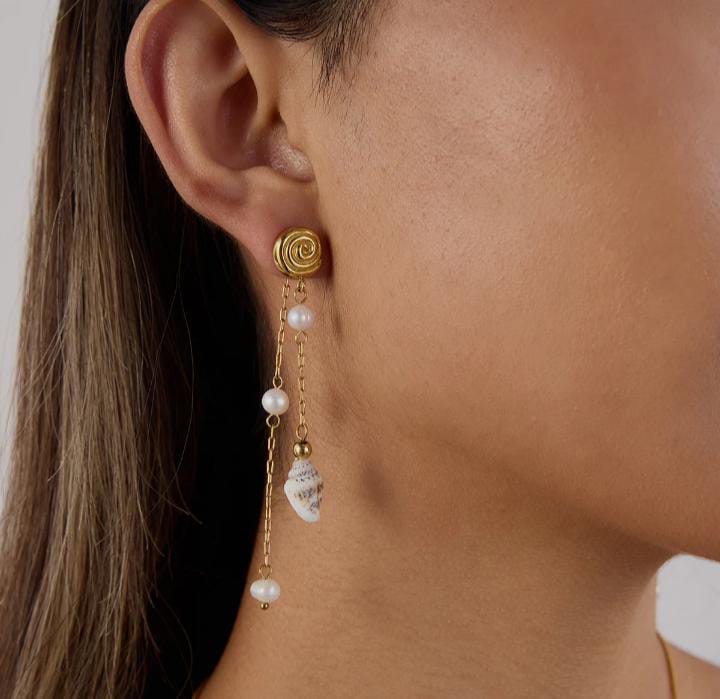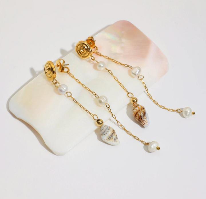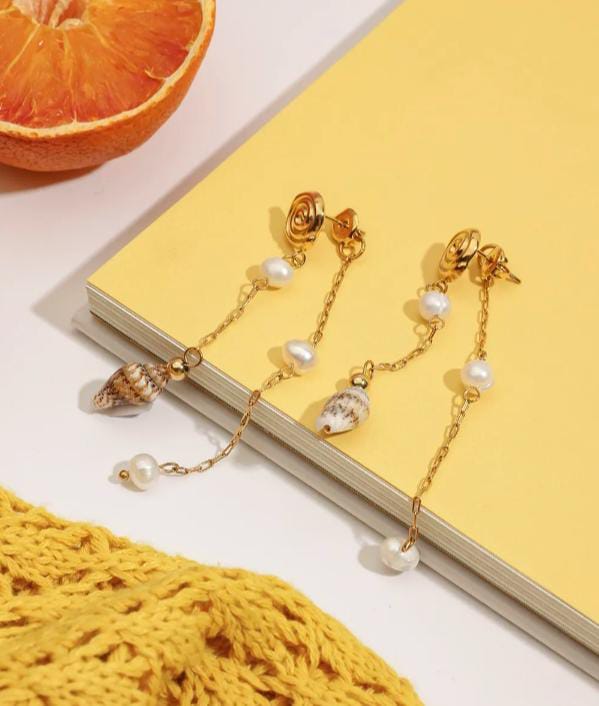 Ocean style conch Real fresh water pearl Tassel earrings