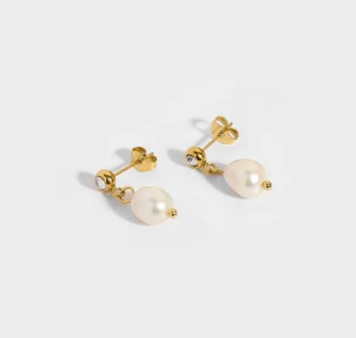 Stainless steel,18k gold plated,hypoallergenic,non-tarnish,water resistant & Sweat proof (can shower or swim with)