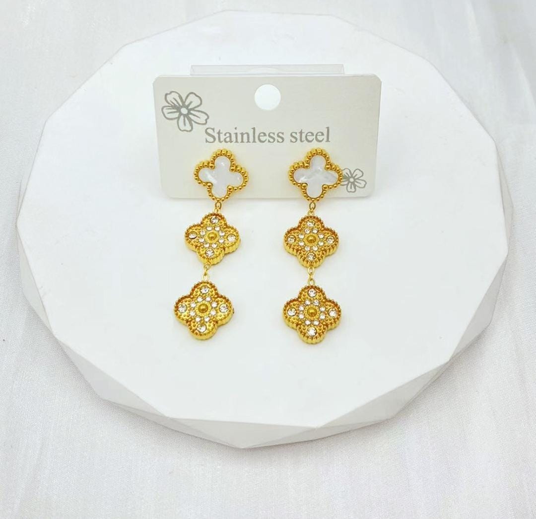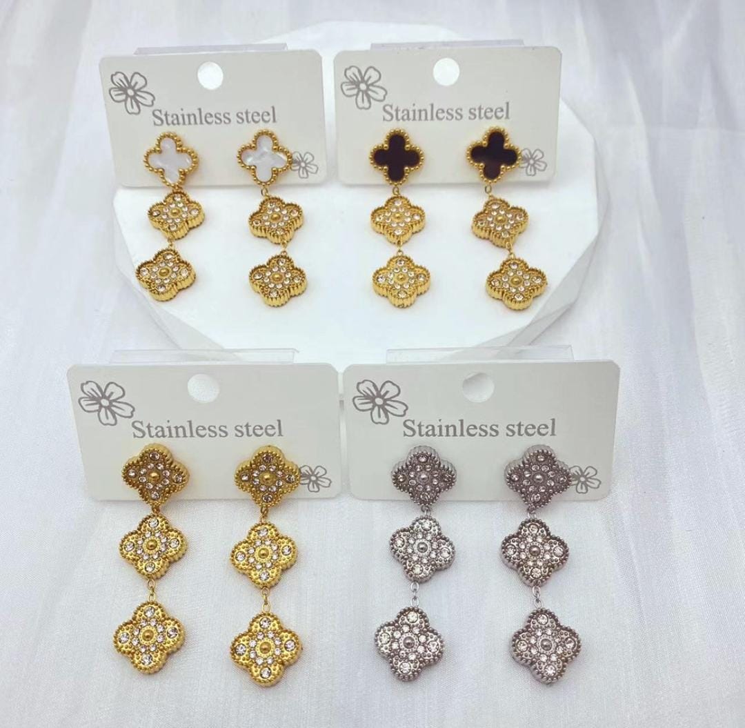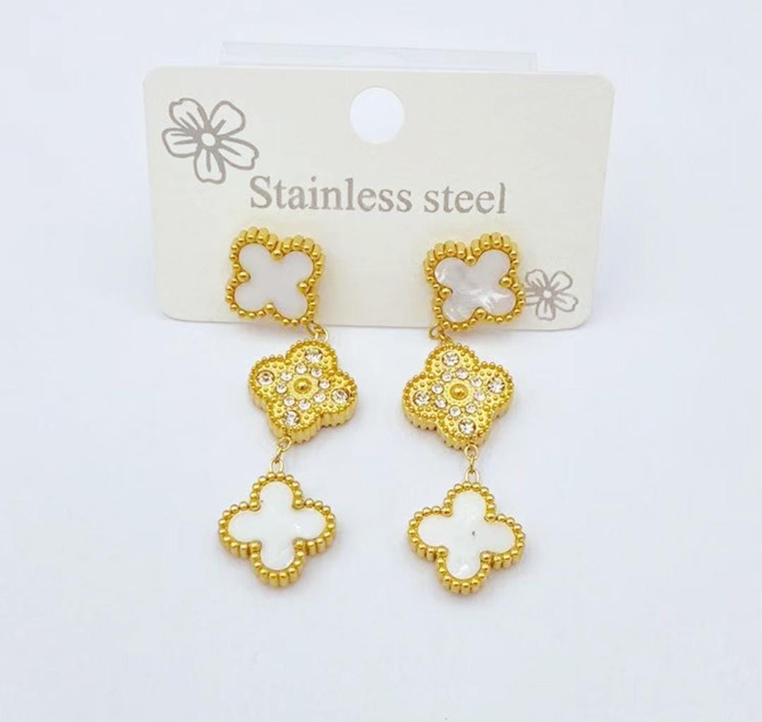 Stainless steel,18k gold plated,hypoallergenic,non-tarnish,water resistant & Sweat proof (can shower or swim with)