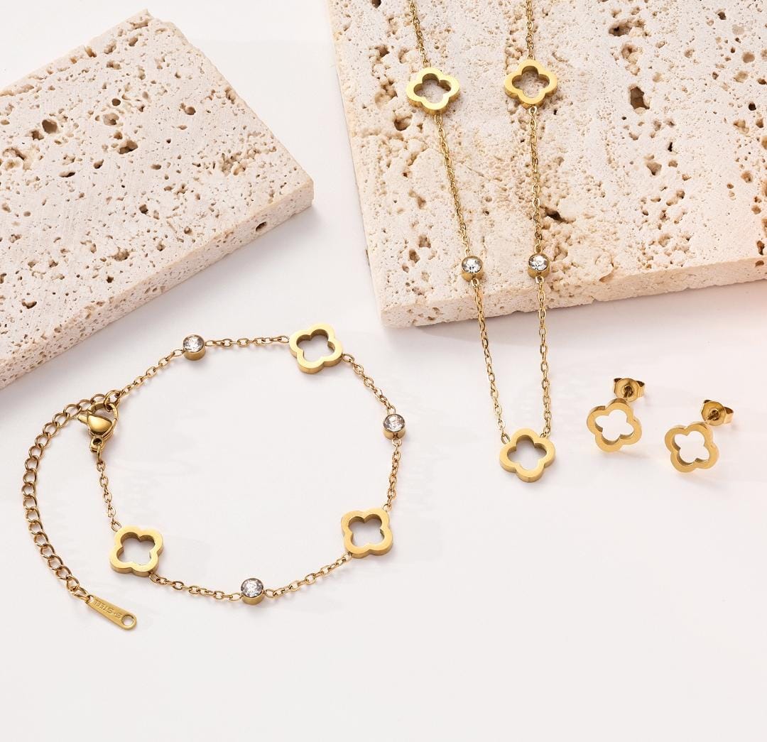 Stainless steel,18k gold plated,hypoallergenic,non-tarnish,water resistant & Sweat proof (can shower or swim with)