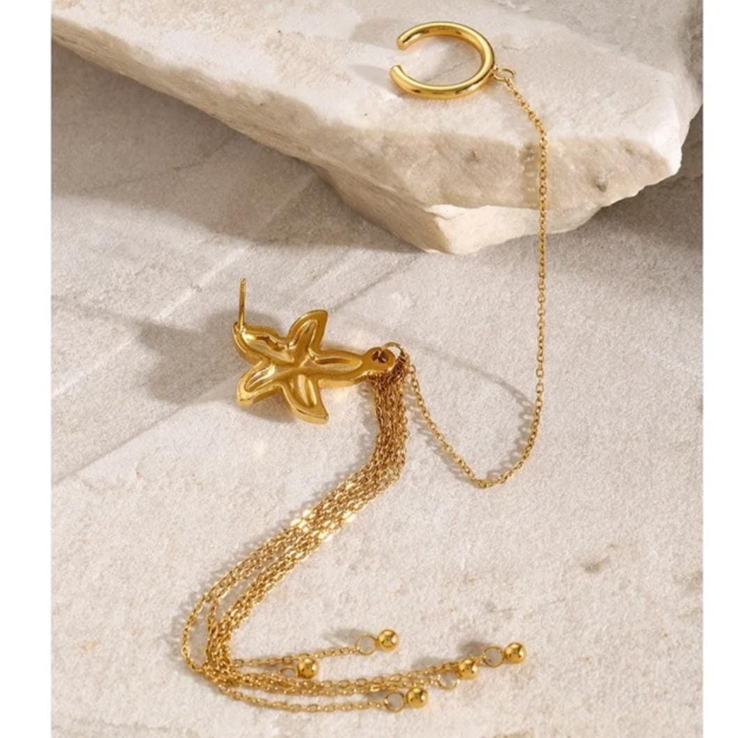 Stainless steel,18k gold plated,hypoallergenic,non-tarnish,water resistant & Sweat proof (can shower or swim with)