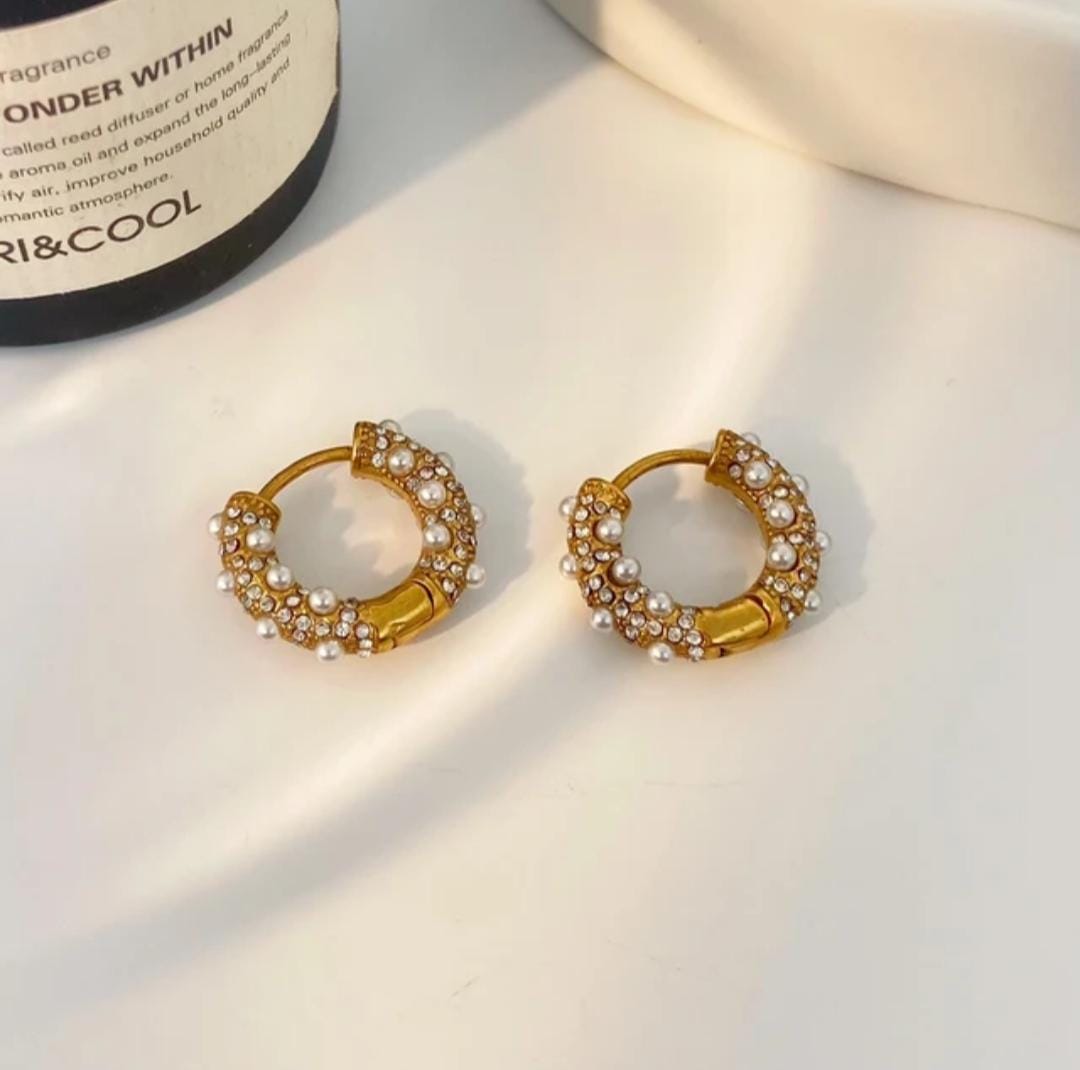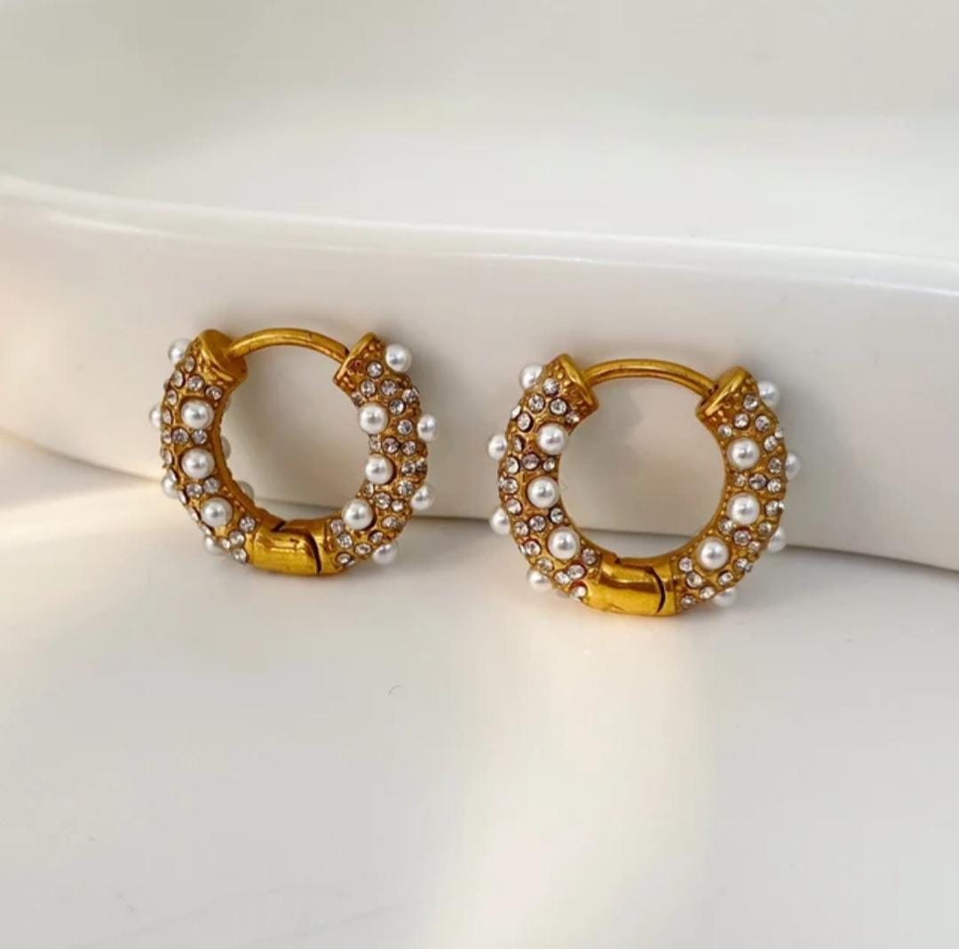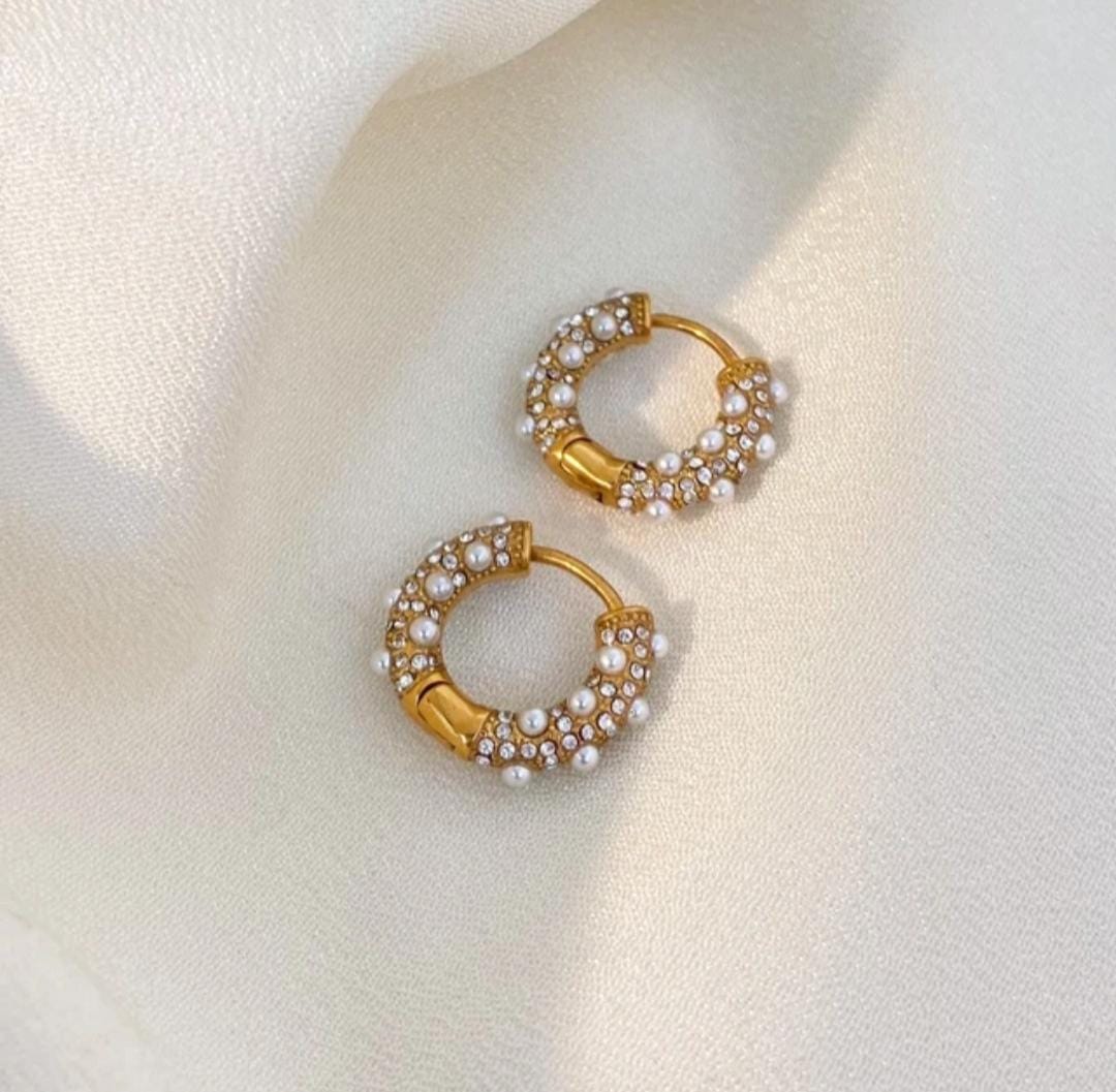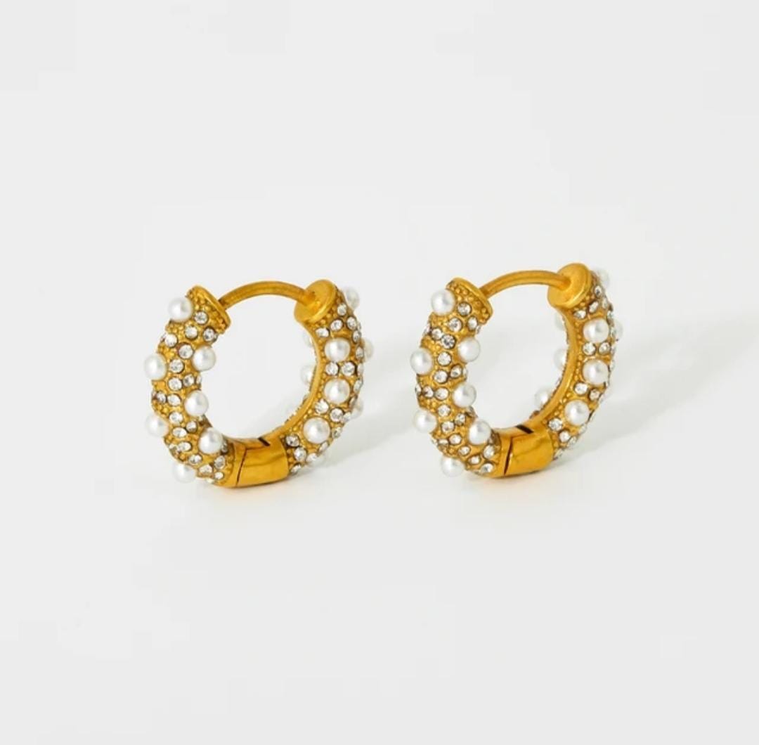 Sugar Candy hoops earrings with zirconia and faux pearl