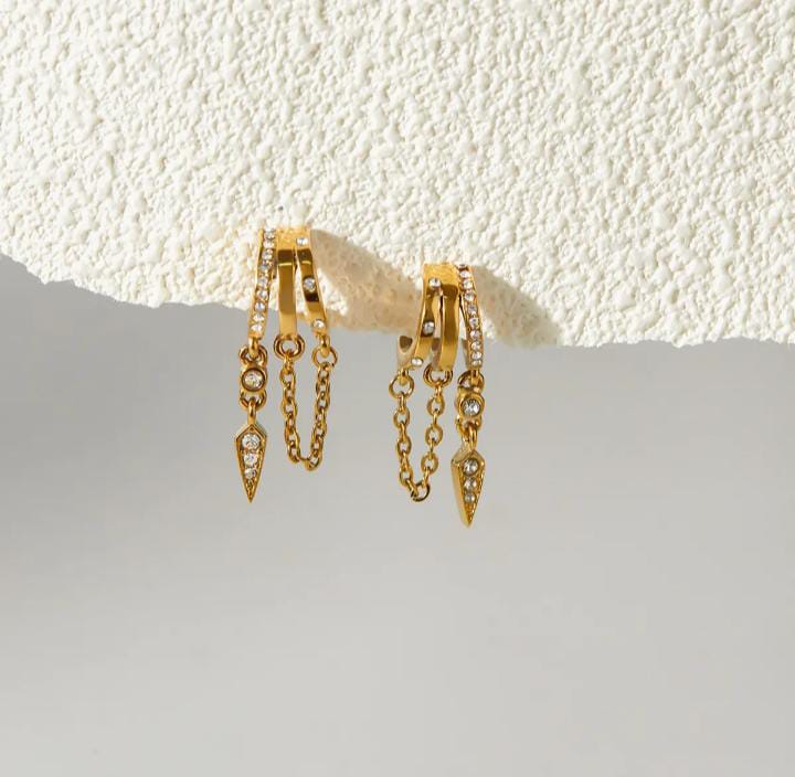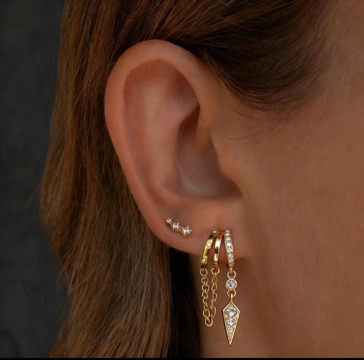 Triple stud earring chain with zircon