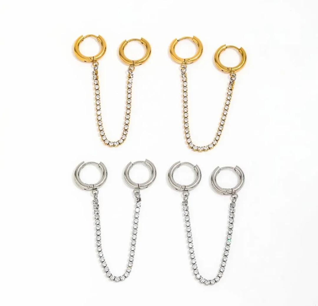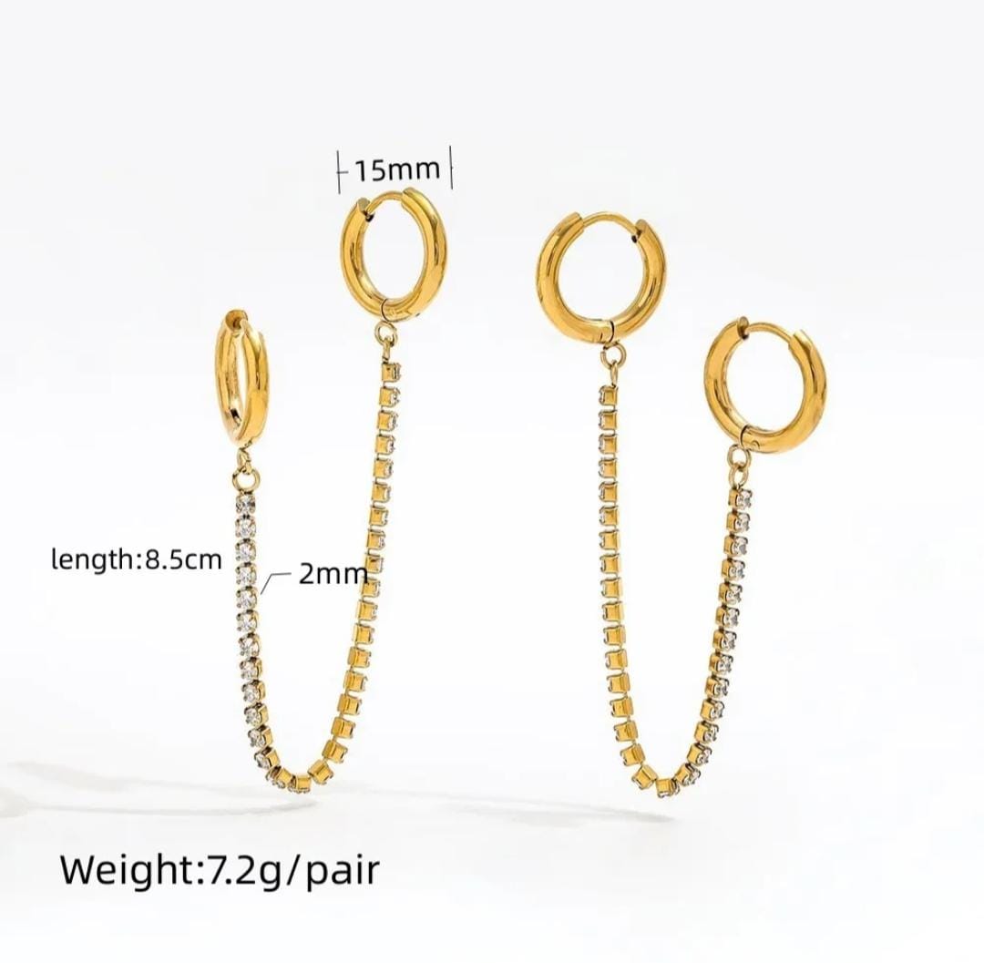 Stainless steel,18k gold plated,hypoallergenic,non-tarnish,water resistant & Sweat proof (can shower or swim with)