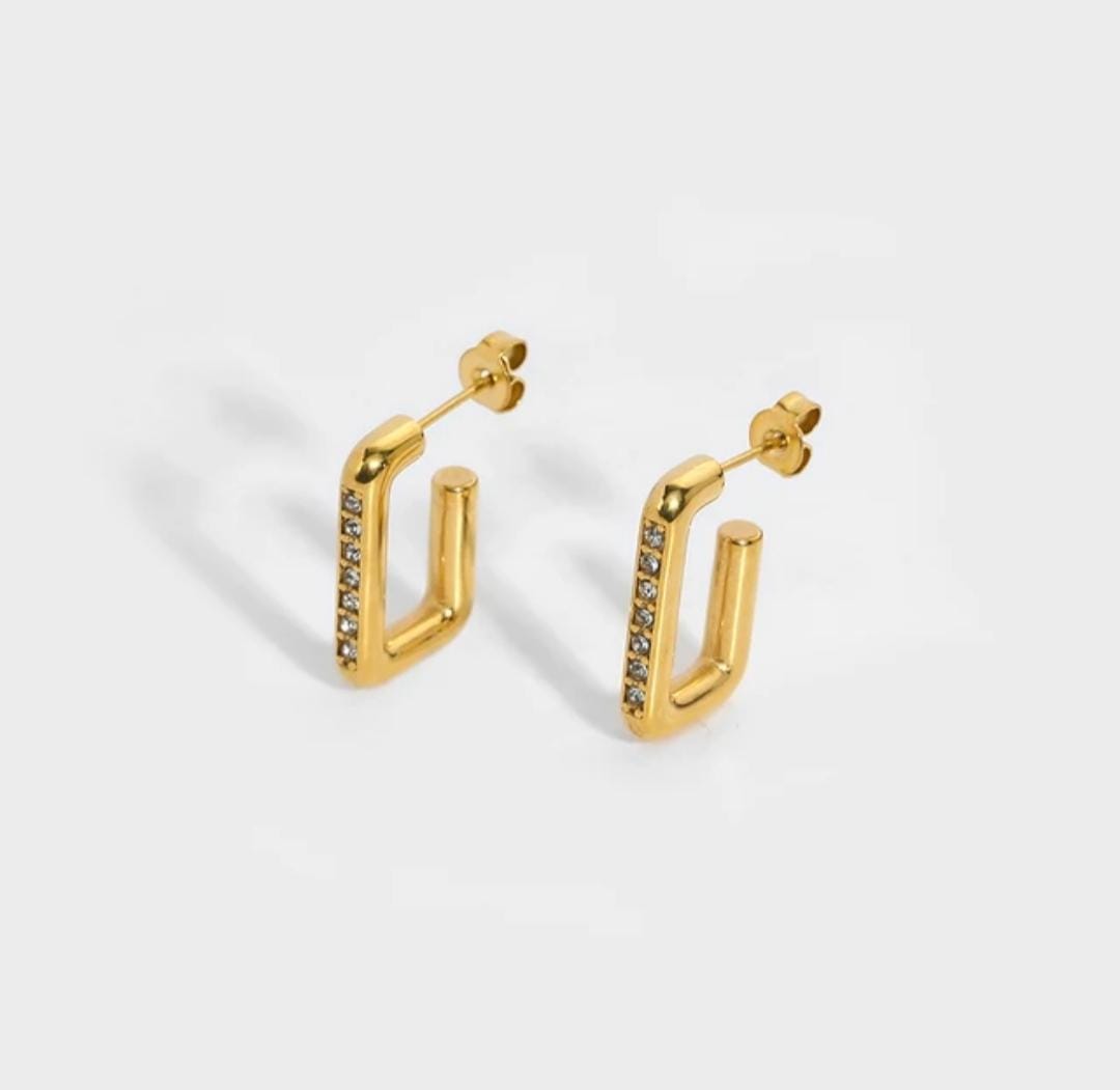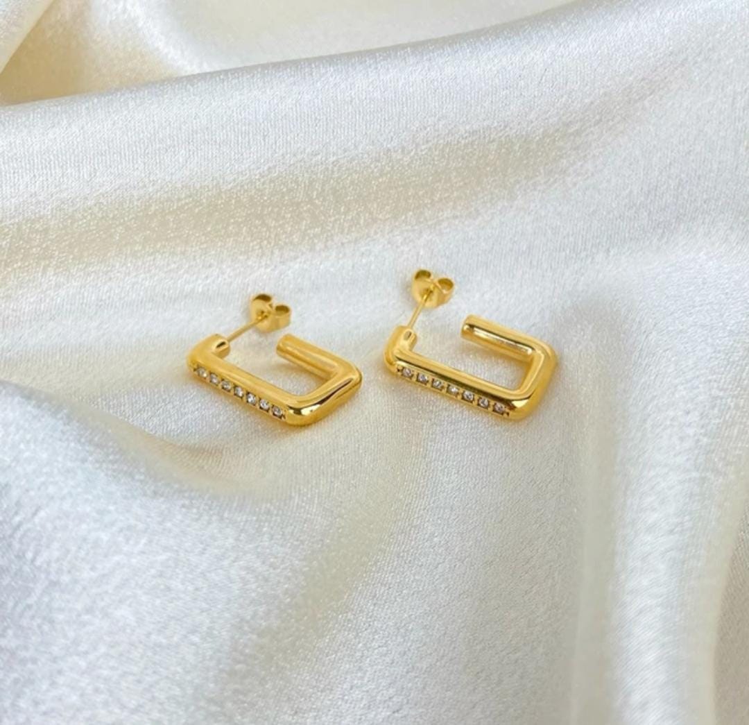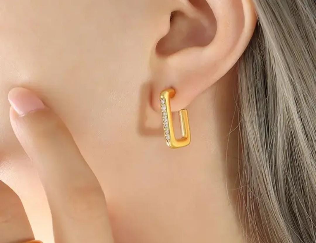 Stainless steel,18k gold plated,hypoallergenic,non-tarnish,water resistant & Sweat proof (can shower or swim with)
