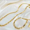 Stainless steel,18k gold plated,hypoallergenic,non-tarnish,water resistant & Sweat proof (can shower or swim with)