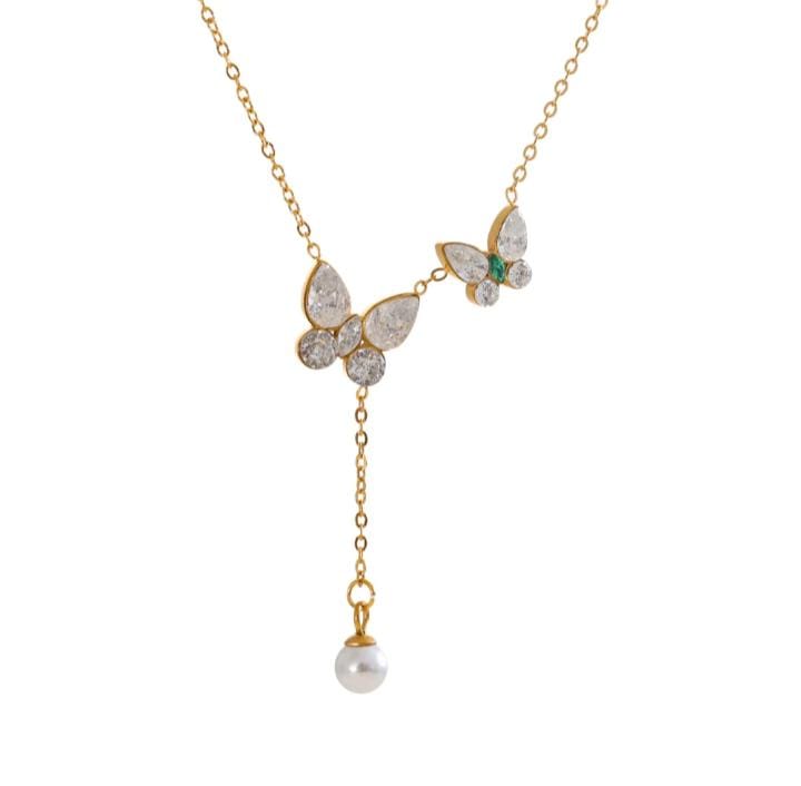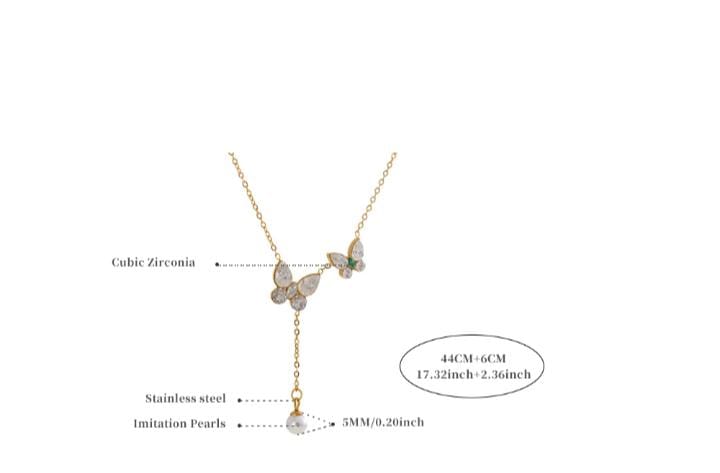 Y style butterfly chain faux pearl